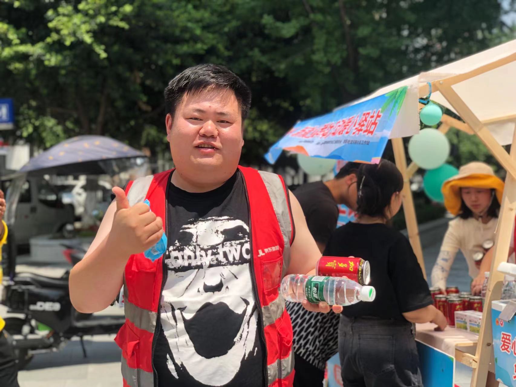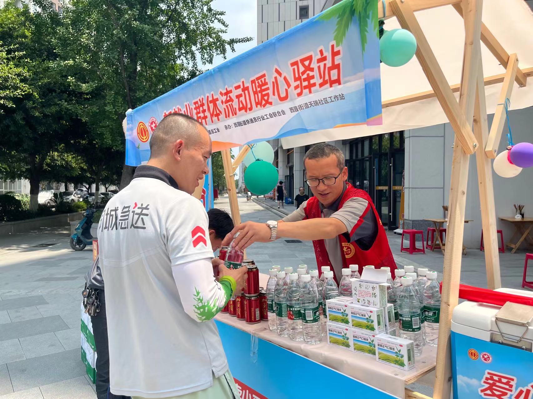 成都高新区西园街道:快递小哥化身工会志愿者为户外劳动者送清凉