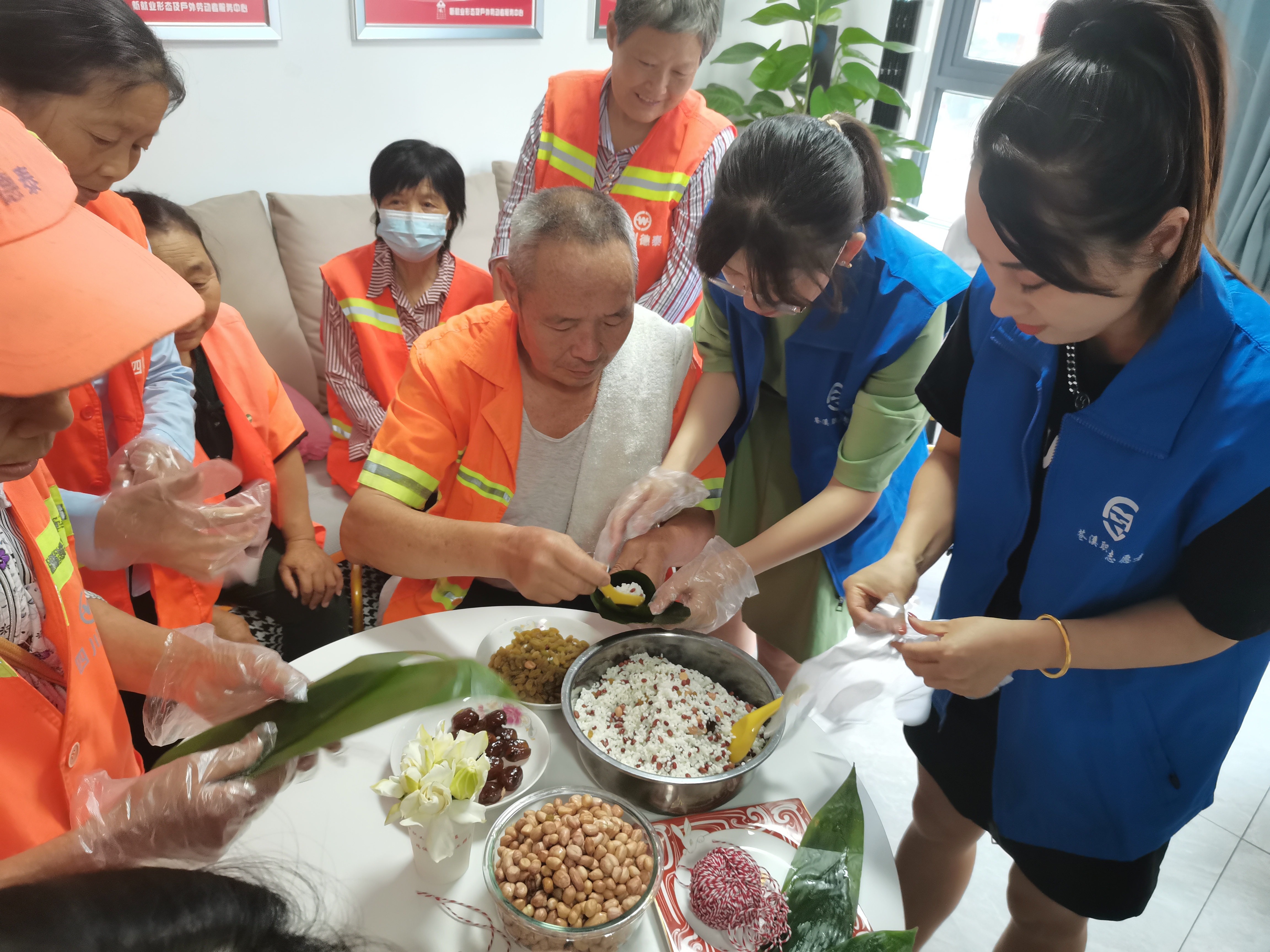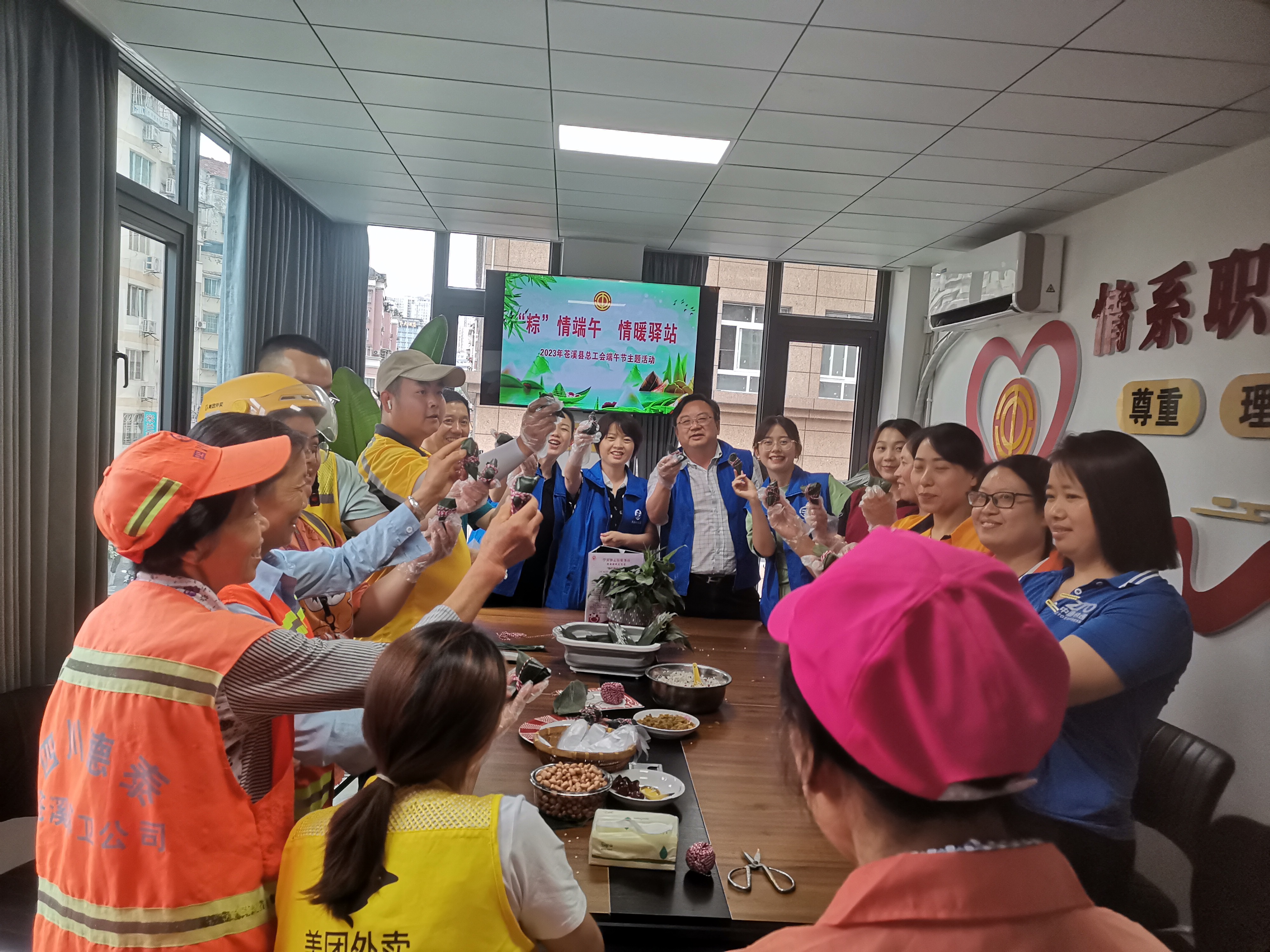 位于苍溪县电影院的户外劳动者1号驿站内笑声不断,其乐融融,几张长桌一字排开,40余名来自网约送餐、快递、环卫等企业的新就业形态劳动者与工会职工志愿者们齐聚一堂,展开了一场别开生面的“包粽子”比赛,填糯米、放红枣、裹粽叶、扎线……一张张翠绿的粽叶,一盆盆新鲜的糯米,一颗颗喜人的红枣,在一双双巧手的灵活操作下,连同节日美好祝愿被包裹成了一个个紧致饱满的粽子。“这样的活动很有意义,不仅让我们提前度过了一个开心的端午节,还让我们感受到了党和工会组织对我们这些普通劳动者的关心和爱护,有组织的感觉真好。”美团外卖员周瑜岚说道。