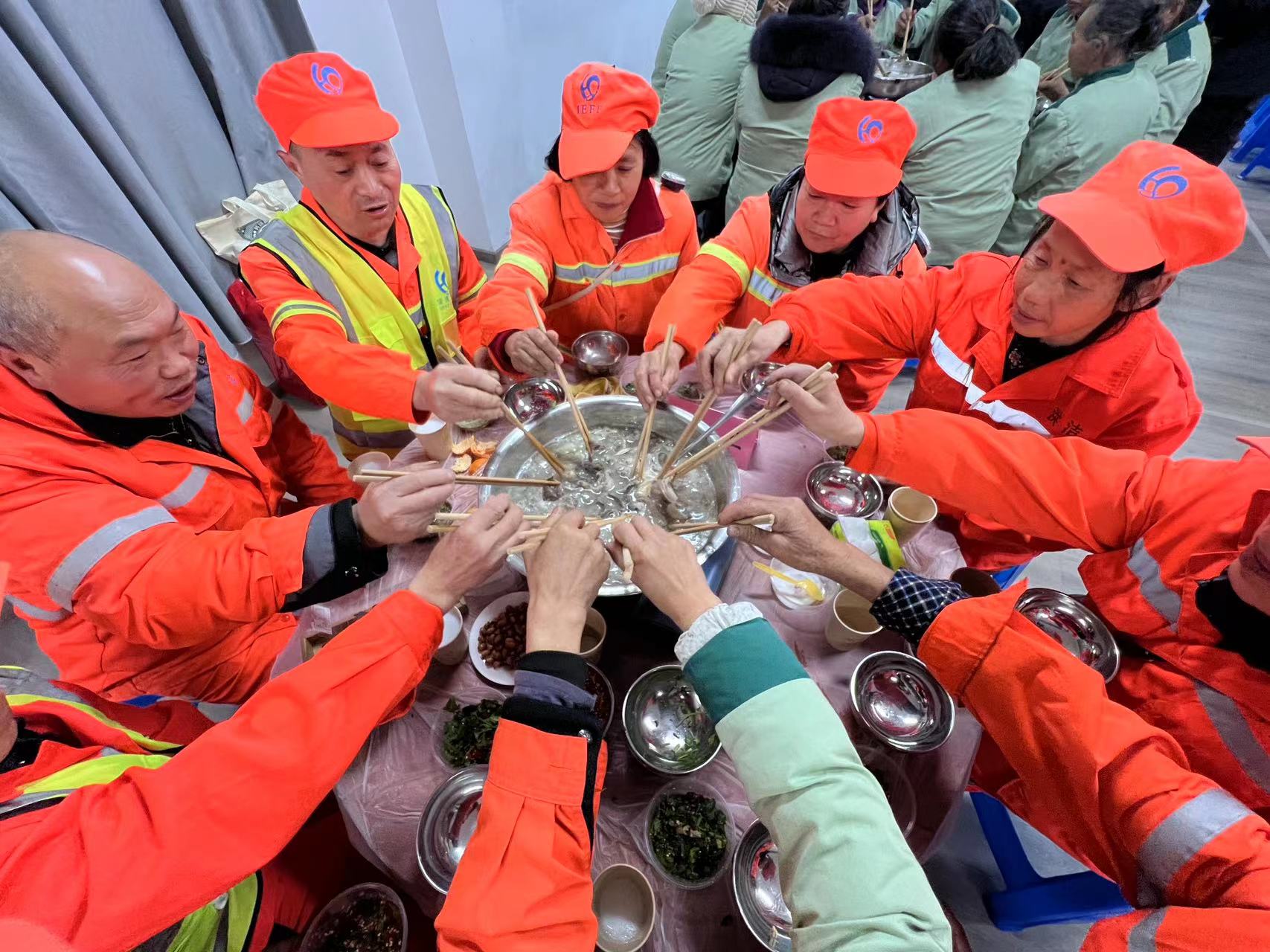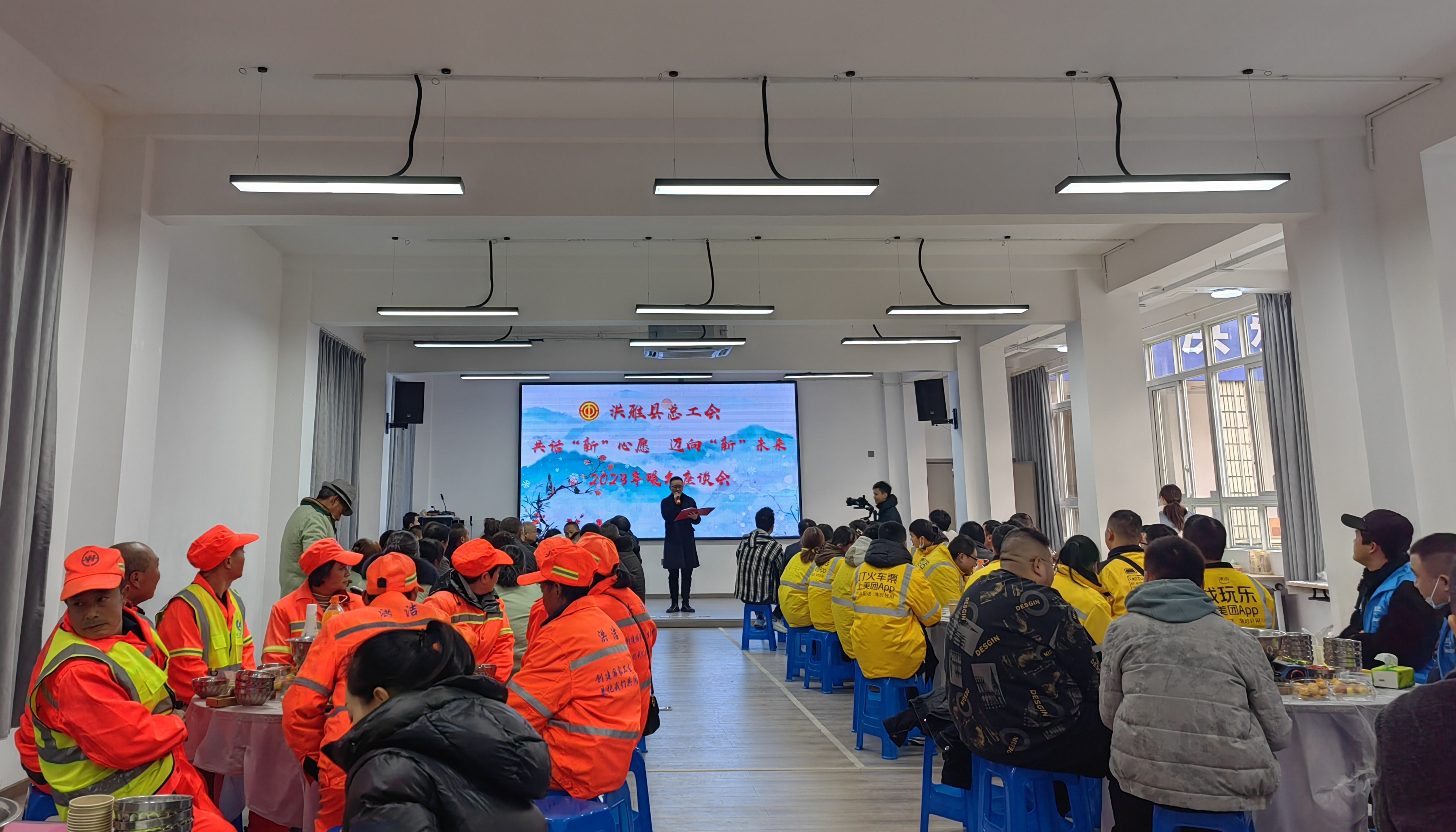 12月21日,寒冷的冬夜,眉山市洪雅县劳动人民文化宫内却热火朝天,十张大圆桌,桌上冒着热气的羊肉汤,围坐在一起的职工们争先恐后的抢答,将这场面向外外卖小哥、环卫工人、网约车司机、快递员、保安员等新就业形态劳动者的暖冬坝坝会推向了高潮。