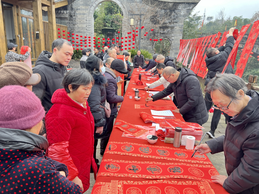 51网讯 (林昆 记者 刘聪)为营造喜庆祥和的节日氛围,丰富职工群众的文化生活,1月27日上,眉山洪雅县总工会邀请书法家协会、美术家协会在柳江古镇开展“迎新年、写春联、送万福”活动,为近500名群众、返乡农民工、外来游客写“福”字、送春联,将节日的祝福与浓浓的年味送到职工群众身边。