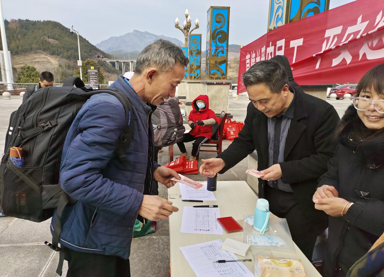 “真没想到,刚到家门口就收到车票补助和新春大礼包,礼包里面有毛巾、洗衣粉、洗漱套装等生活物资,都很实用,我突然觉得我们一年辛辛苦苦在外面打拼也不是那么累了。”家住曾家镇毛坝村的李春光拿着暖心包,向现场的工作人员连连道谢。