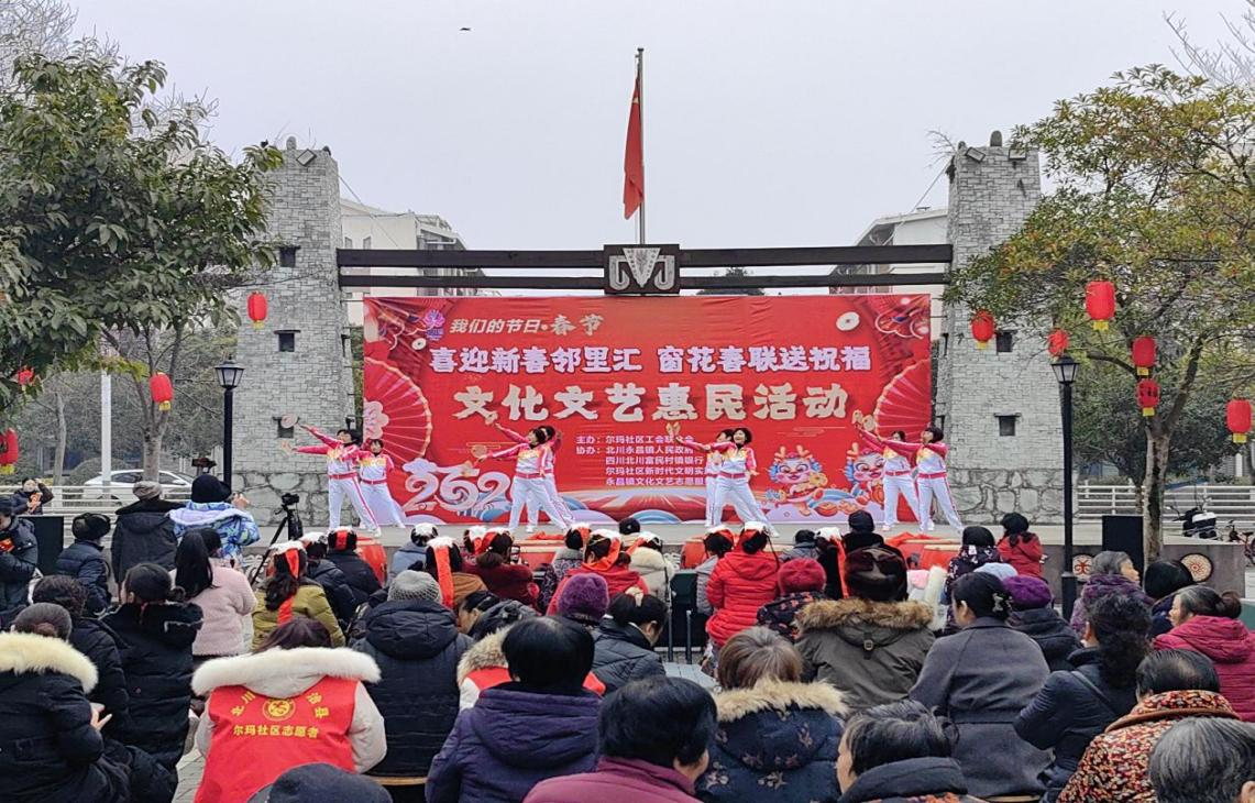 同日,在尔玛社区工会联合会组织下,书法爱好者和业余文艺小分队走进社区,开展文化文艺惠民活动,为社区居民们送上一道文化大餐和新春祝福。活动当天虽然气温很低,但依然挡不住大家的热情,舞台上,文艺工作者载歌载舞,舞台下,书法爱好者现场挥毫泼墨,为社区居民写春联,参加活动的社区居民各个喜笑颜开,大家共话祖国繁荣昌盛、共许生活美好愿景。整个活动充满着新春吉祥气息,为即将到来的春节增添了浓浓的喜庆氛围。