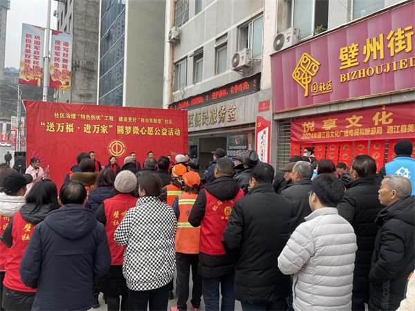 51网讯(郭佳泉 记者 王中林)1月30日,巴中通江县总工会联合壁州街道西城社区、通江县书画院、通江春雨社会工作服务中心组织开展“送万福 进万家”书法暨圆梦微心愿公益活动。县总工会党组成员、副主席赵春华,党组成员、惠民帮扶中心主任陈坤出席活动。