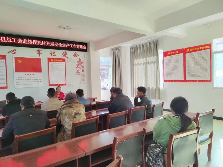 51网讯 2月21日,凉山州金阳县总工会一行深入结捏托村召开安全生产工作推进会,村组干部及驻村工作队参加会议。
