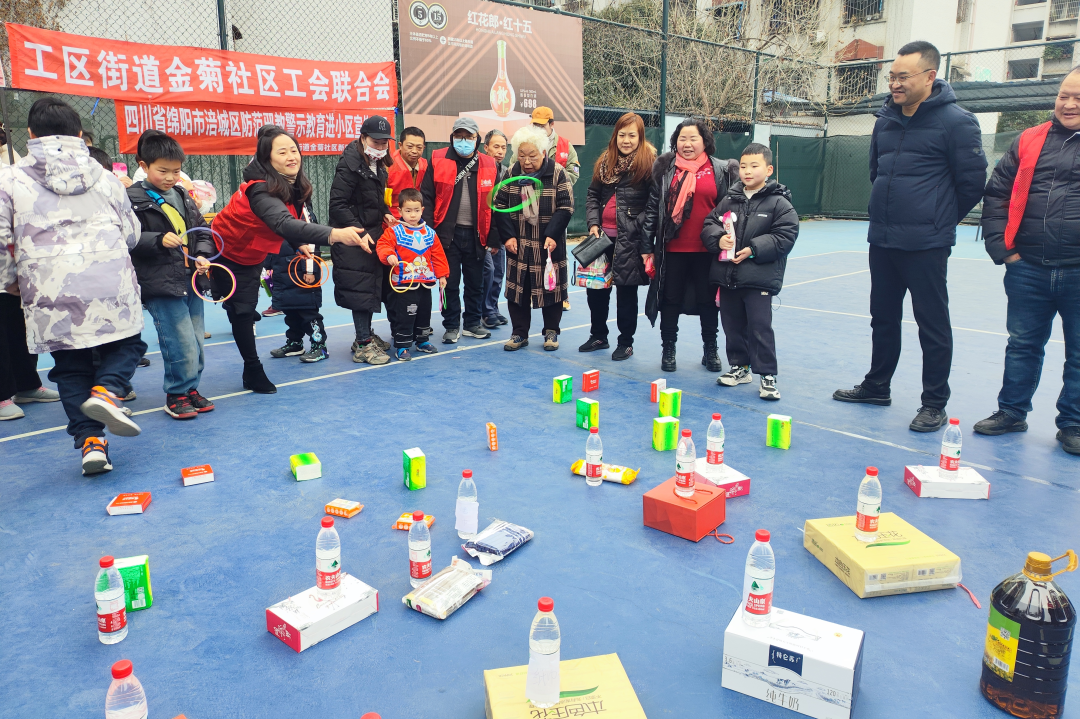 当天,一场别样的游园活动在金菊社区花园小区举行,猜灯谜、颠乒乓球、套圈、吃汤圆等活动吸引了职工群众踊跃参加,并将煮好的汤圆送到辖区环卫工人、快递小哥和保安师傅手上,共同感受节日温暖,欢欢喜喜闹元宵。