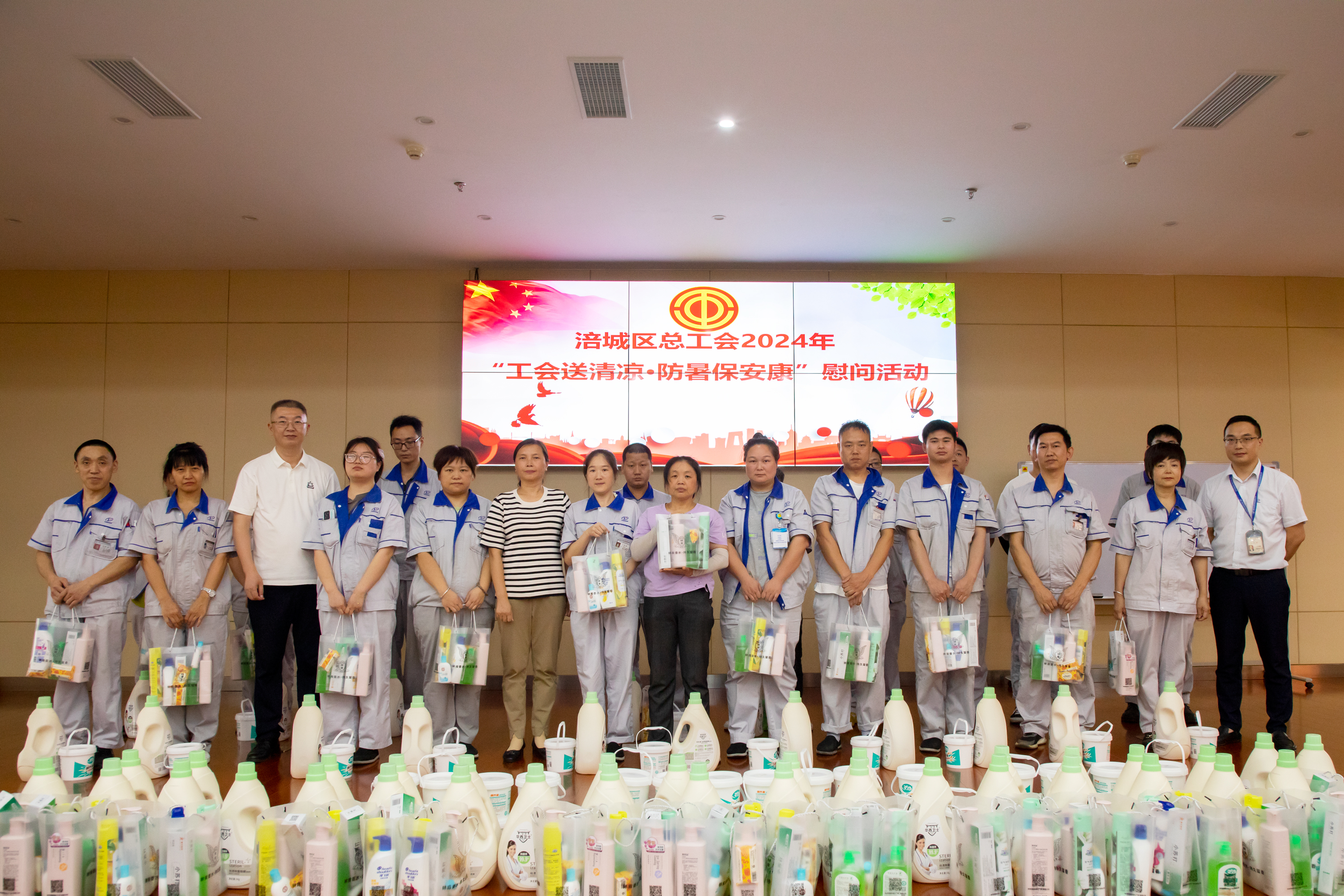 在永贵科技,慰问组为生产一线职工代表送去“清凉包”,对他们推动涪城经济社会发展表示衷心感谢,叮嘱他们在高温时期要做好个人防护,并激励广大职工为发展新质生产力、推动高质量发展持续奋斗、建功立业。
