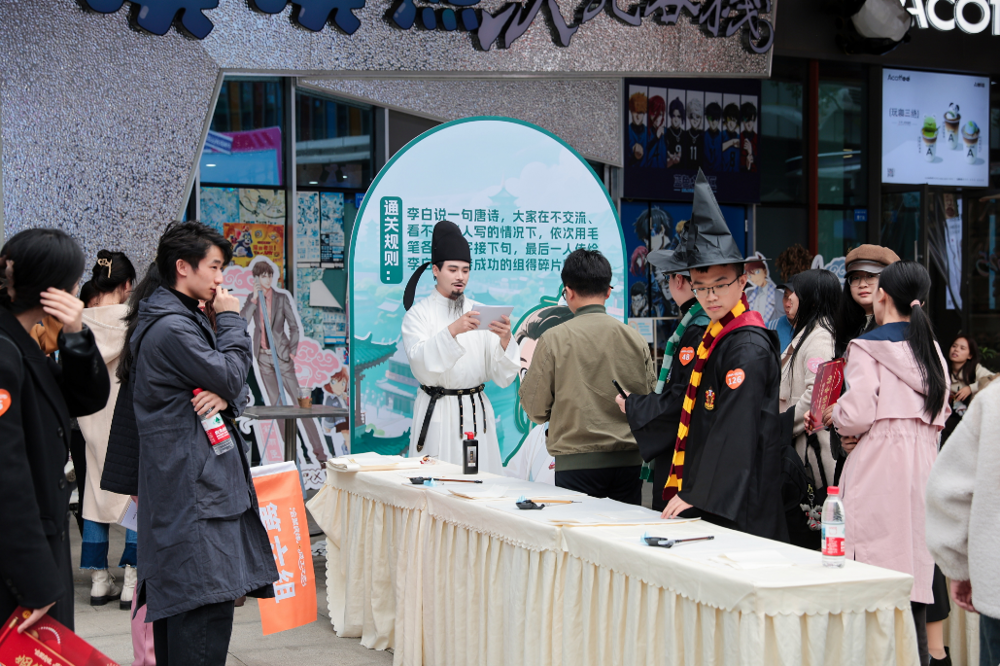 活动现场设置了十大点位,参与者以团队形式参与挑战,在【哪吒之魔童降世】中合力呐喊,穿越【长安三万里】与李白对诗,在【白蛇2:青蛇劫起】中挑战“123凝!”静止任务,其余点位均融合动漫情节与协作机制,让参与者在互动中自然而然地走近。