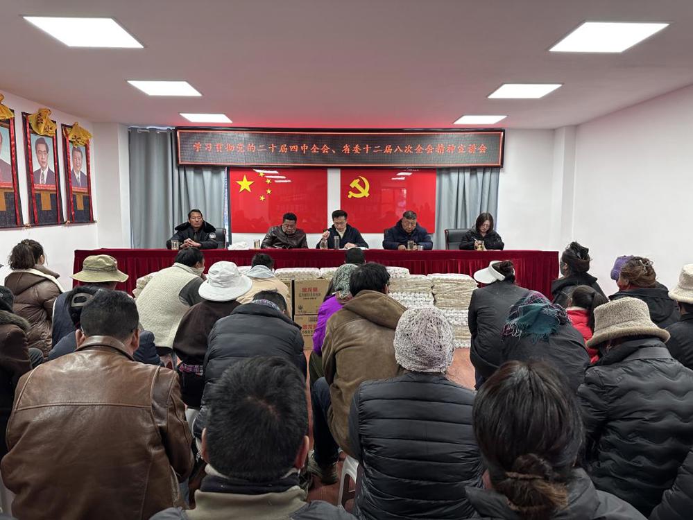 在炉霍县朱倭村,李斌一行来到党群服务中心,与各族村民亲切交谈,详细询问他们的生产生活状况、收入来源及实际需求。随后还主持召开学习贯彻党的二十届四中全会、省委十二届八次全会精神宣讲会,结合乡村振兴实践与各族群众生产生活实际,用通俗生动的语言解读全会核心要义,重点阐释了“十五五”时期农业农村现代化、民生保障改善、民族团结进步等与各族群众密切相关的政策部署。