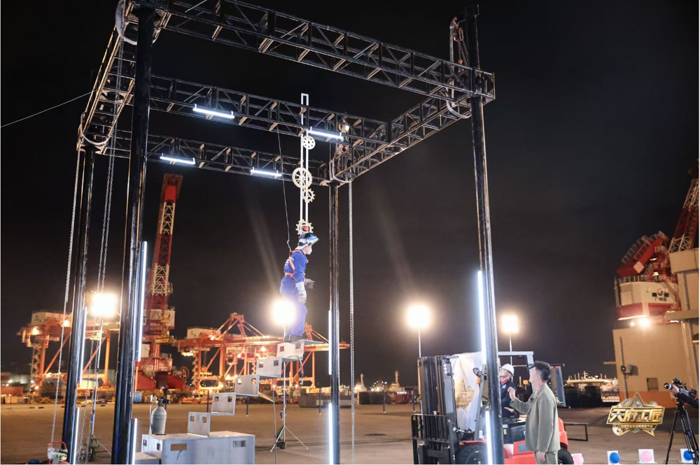 当然,本季《天府工匠》不仅仅是形式创新,挑战也在不断升级。海陆工匠的跨界协作、川粤大厨联袂挑战“百味同心”,都让节目看点十足。首期节目,镜头精准聚焦于穗蓉两地协同发展的时代宏大命题。在素有“湾区之心”美誉的广州港南沙四期全自动化码头,摆下擂台,开启巅峰对决。录制现场,即将发往世界各地堆砌如山的集装箱与穿梭不息的无人智能运载车,成为工匠们的舞台背景,四组穗蓉工匠组“CP”联袂挑战,解锁工匠“超能力”。在“咱们工人有力量”挑战中,广汽集团“大国工匠”孙庆勇在45分钟内完成车门5处损伤的“微创修复”,一汽-大众“四川工匠”刁建兵精准研磨装配核心部件,二人合力用真空吸附的研磨件拉动重载货车。在“殊途同归”挑战中,成都中铁八局周灵军在全盲状态下凭镜面逆向操控叉车穿越障碍,广州广船国际陈庆城将钢材焊接为无支撑悬空楼梯,成功登顶。而“百味同心”挑战堪称味觉盛宴,广州东方宾馆凌家驹、覃启贵与成都铜壶苑李超、罗旸阳四位大厨,以“薪火相传”为主题融合粤川风味,融入双城符号与工运元素的创新菜品征服评审。在“捕风追影”的挑战中,广州像素数据古竞20秒内凭五官局部特征锁定目标,中国人民解放军第五七一九工厂权雄章70分钟组装无人机并精准降落,AI技术与精密工程的碰撞从五位蒙面女生中精准识别目标。这场跨越山海的匠心对话,可谓是强强联手,不断突破极限。