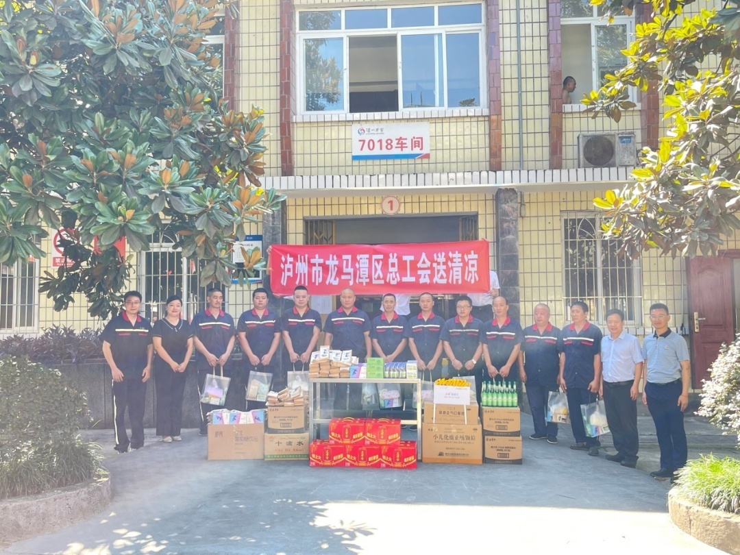 入夏以来,龙马潭区总工会持续开展“送清凉”慰问活动。近日,区总工会常务副主席周传勇一行,前往泸州中酿酒业有限公司慰问高温车间工人,为他们送去十滴水、风油精、清凉茶、驱蚊花露水等防暑降温物资,让坚守在生产一线的职工群众们充分感受到了工会组织的关怀。