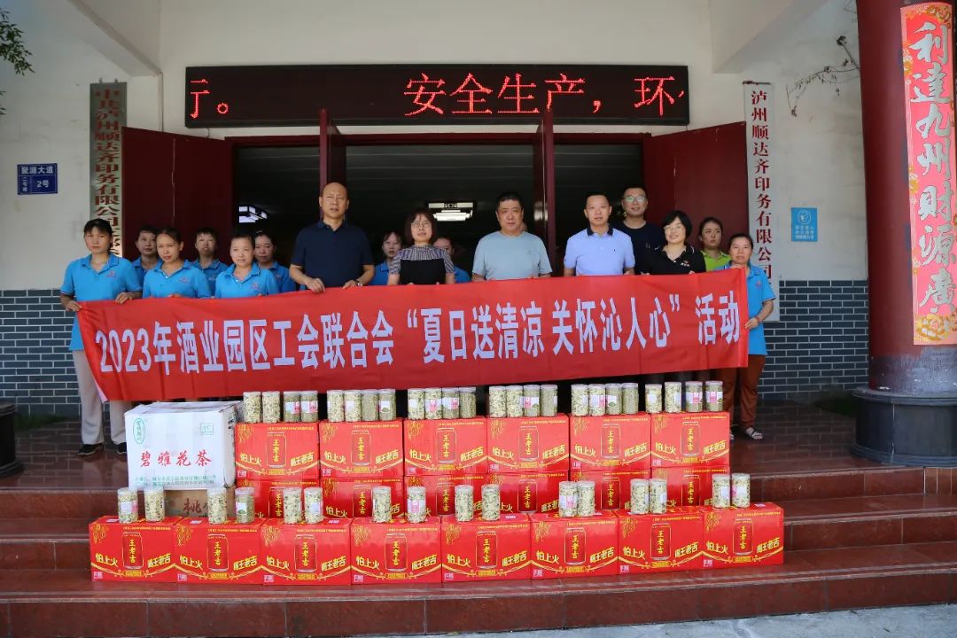 近日,酒业园区党工委书记刘淑兰及其他领导班子成员,分别率队到顺达齐、诚通物流、天保酒业、金豪宇胜等企业开展“夏日送清凉 关怀沁人心”慰问活动,与一线职工亲切交流,了解职工工作生活情况,叮嘱大家注意防暑降温,保障自身安全和健康。同时为企业职工送上菊花茶、金银花、王老吉、西瓜等清热解暑物资。