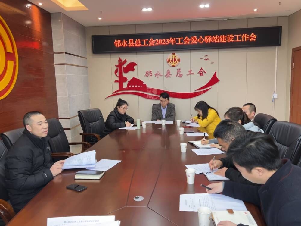 会上,邻水县总工会党组成员、副主席谭贵平总结了2022年工会爱心驿站建设及运行情况,对好的经验做法进行了推广介绍,指出存在的问题和不足,安排部署了今年工会爱心驿站建设工作。各参会单位结合自身区域、行业特点,积极为工会爱心驿站建设献计献策。