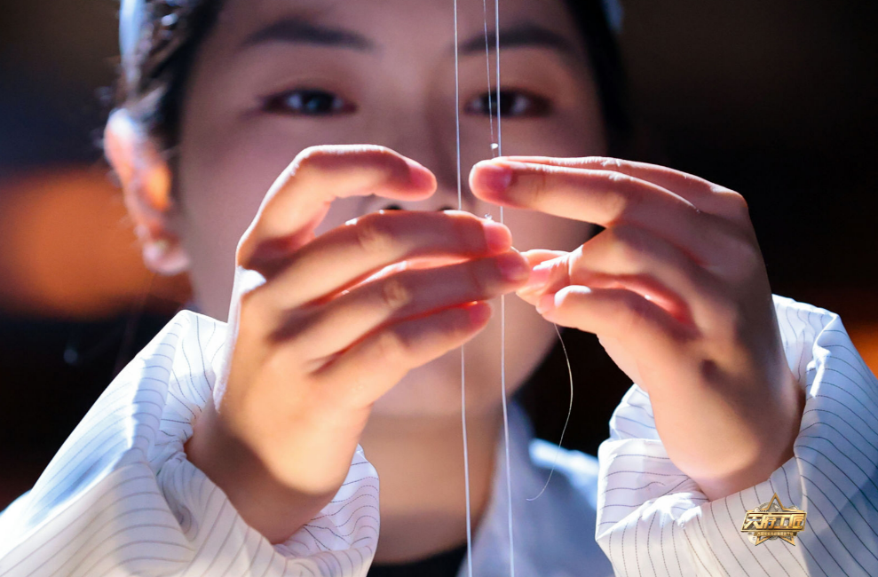 无线电装接专家唐仁杰设计“稳操胜券”挑战,要求选手在两根间距1厘米的鱼线中间区域进行操作,将芝麻大小的灯片用铜线焊接并串联起来,在规定时间内看谁焊的灯片数量又多质量又好。这场挑战,既是考验焊接基本功,也想看看年轻一代的潜力,体会焊接技术中“稳”与“准”的真正含义。