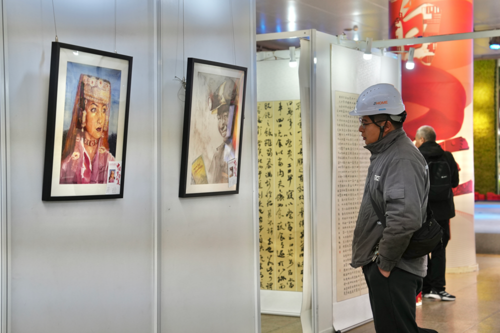步入展区,一幅幅笔墨丹青与光影佳作沿墙展开,吸引不少观众驻足细观。展览以“中国梦·劳动美——奋斗百年路 起航新征程”为主题,以“百年工运”为主线,集中呈现了川渝两地职工创作的300余件优秀书画摄影作品。有的作品刻画一线劳动者的身影,有的则以写意笔触抒写时代气象,艺术与历史在展厅内静静交融,传递出“劳动创造幸福”的深厚感染力。