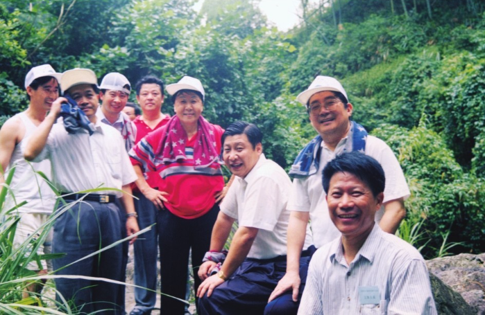 1999年6月,习近平在福州森林公园参加纪念毛主席“发展体育运动,增强人民体质”题词47周年登山健身活动。(图片来源:《习近平在福建(下册)》