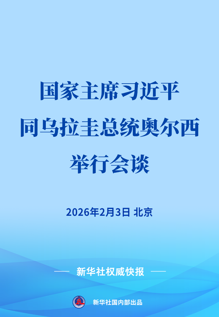 习近平同乌拉圭总统奥尔西举行会谈 来源:新华网 发布时间:2026-02-03 11:09:30 浏览次数: 次 【字体:小 大】 2月3日,国家主席习近平在北京同来华进行国事访问的乌拉圭总统奥尔西举行会谈。 编辑:rmtzxcqt 分享到: 【打印正文】