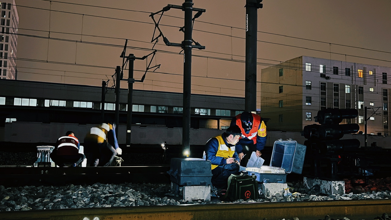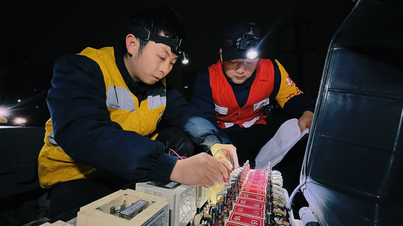 午夜,寒风凛冽,时间紧任务重,漫漫长夜于他们作业而言甚至有些紧促。他们到达作业地点,打开设备箱盒,检查、注油、测量、整治……黑寂的夜晚,唯有他们黄色的身影在闪动。
