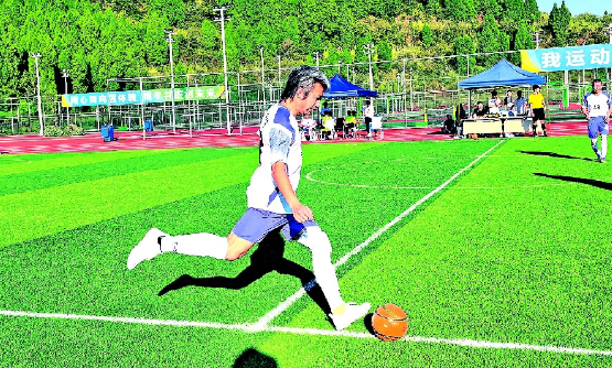 10月15日下午,阳光为遂宁的绿茵场镀上一层金辉,“职超”赛场上,一位头发花白的球员格外引人注目---场边指挥时,他目光如炬、沉着冷静;上场拼搏时,他步伐矫健、传球精准。